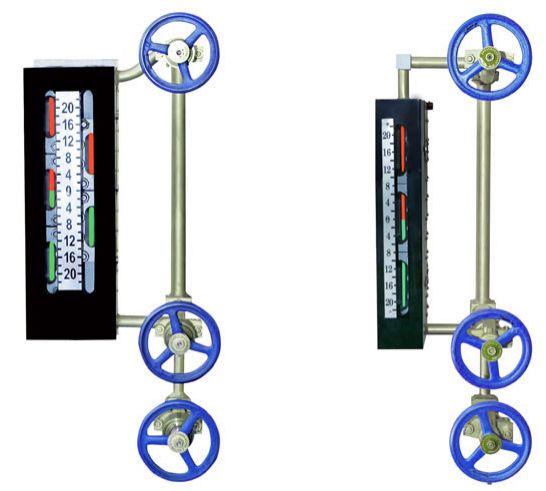 五窗、七窗水位計是在上述優(yōu)點基礎上,研制出在一塊本體上并列設置兩排窗口,通過光學原理轉(zhuǎn)換達到在水位計正前方±3o角范圍觀看水位計兩排窗口,可同時觀察到兩排窗口紅綠變化且紅綠分明、界面清晰,可在水位計可視范圍內(nèi)無盲區(qū)連續(xù)監(jiān)視。