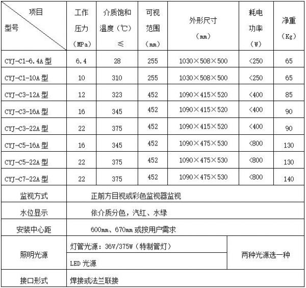 `CYJ型窗式高壓、超高壓彩色液位計是用于各發(fā)電廠、石油化工行業(yè)及各工礦企業(yè)的蒸汽鍋爐或其它壓力容器監(jiān)測水位的一次就地直讀儀表。它是在總結(jié)國內(nèi)外各種透射式雙色水位計優(yōu)點基礎上新研制的長窗式高壓、超高壓雙色水位計,用汽紅水綠顯示液位,無水全紅、滿水全綠。紅綠色界面即為實際水位??稍诂F(xiàn)場直接觀察也可以配我公司生產(chǎn)的彩色工業(yè)電視監(jiān)視系統(tǒng),在控制室內(nèi)的監(jiān)視器熒屏上遠程監(jiān)測現(xiàn)場實際水位。它與其它雙色水位計相比較,具有如下幾種特點: